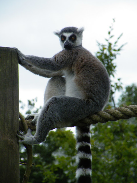 The best part of the day though was without doubt my walk through Lemur Encounters. This is a huge open enclosure where the public can walk among the many ring-tailed lemurs which live there. There were dozens of them, from small babies up to older adults, playing games of 'tig' amongst themselves, jumping onto fence posts and leaping in and out of the trees. One came to sit on the fence post right next to me - unfortunately I can't speak 'Lemurese' so I had to talk to it in English and hope it understood. It looked like it did, and it spent several minutes looking intelligently at me before it jumped down and ran to join its friends.