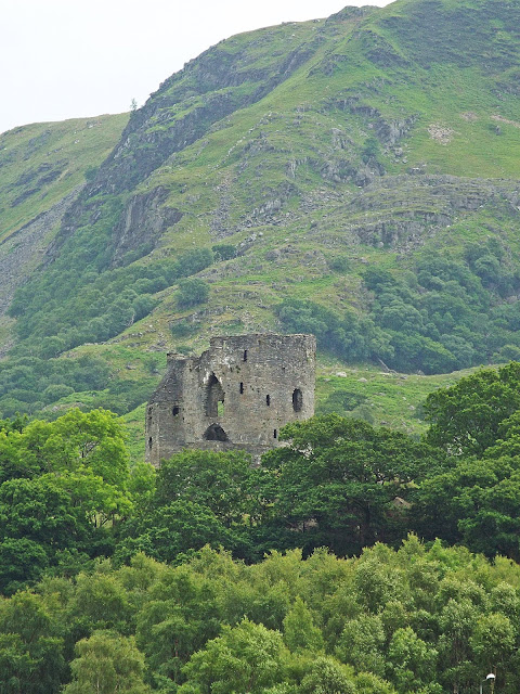 As I walked back through the car park I saw a large board featuring a painted map of the town marked with places of interest and with a box of tourist leaflets at the side of it, and I realised that the ruined castle which I could see on the hill above the lake was open to the public and I could have got there via a path from the bottom end of the lake. If I'd known that when I was round by the slate museum I would have gone to take a look but it was quite a distance to walk all the way back from where I was and the time was almost up on my car park ticket anyway so I decided to save that one for another time.